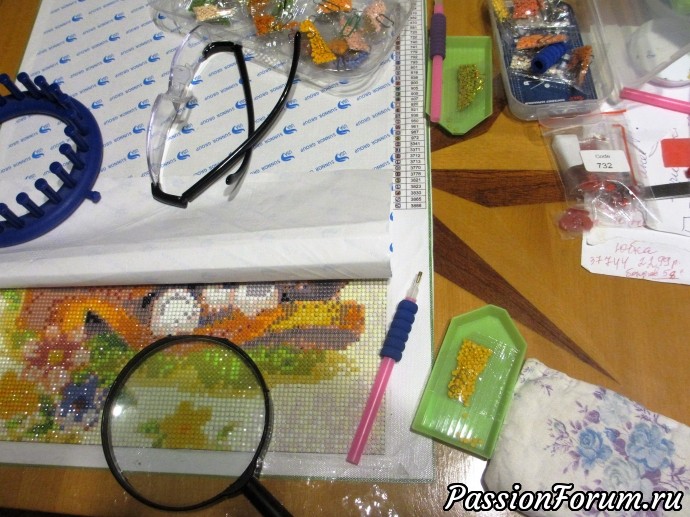 (Мышь клеила по частям, прикрывая непрозрачной плёнкой, чтобы не бояться, привлекала к вышиванию внучек!)