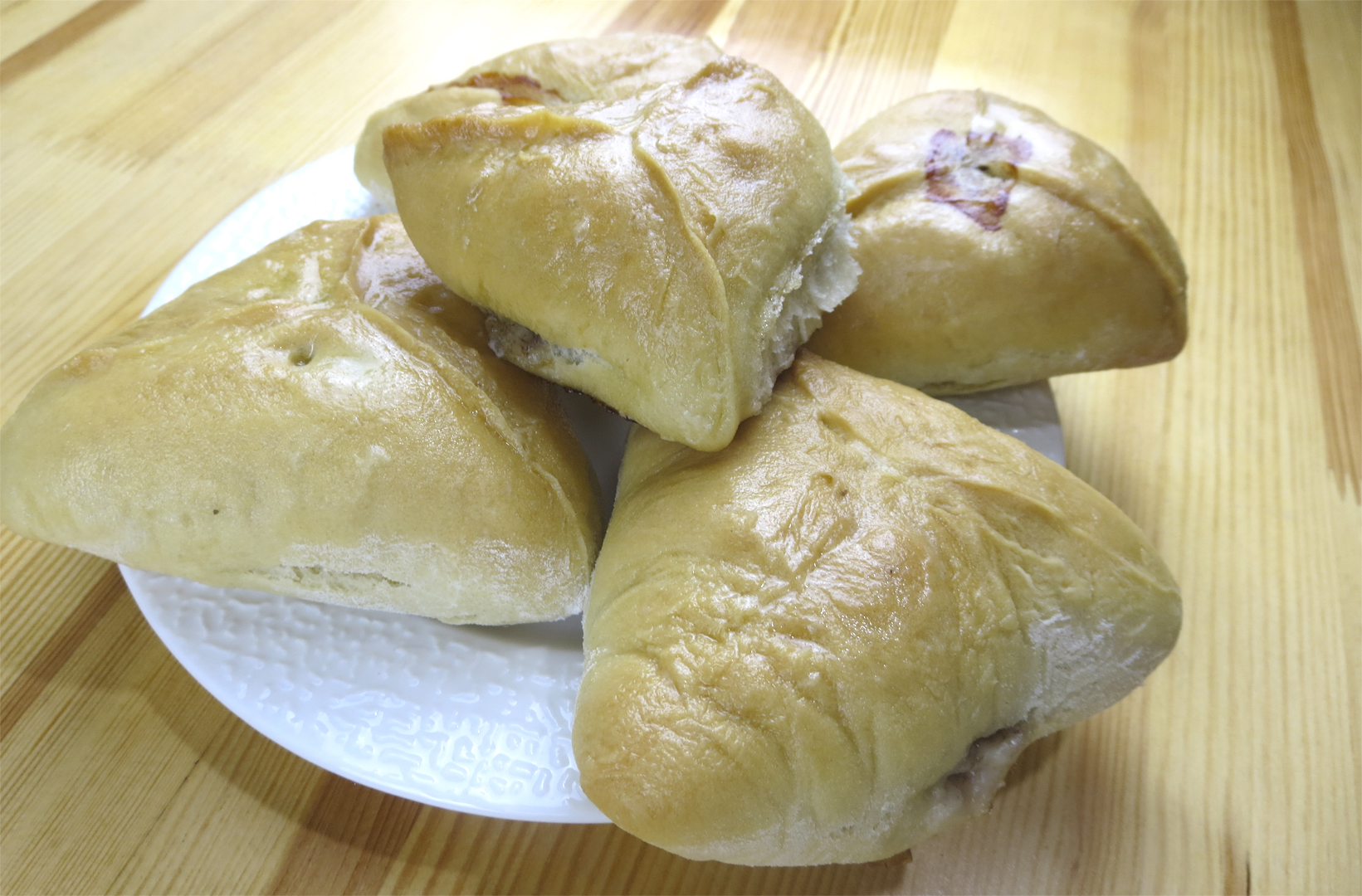 После выпечки, еще горячие эчпочмаки смазала сливочным маслом. Когда пирожки немного остыли, мы благополучно их всей семьей съели.