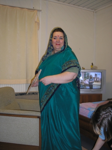 На работу я тогда, в молодости, в сари не ходила, я носила тогда пенджаби, и сейчас верхняя часть от него у меня сохранилась, а вот штаны (кстати, ужасно неудобного кроя) куда-то потерялись.