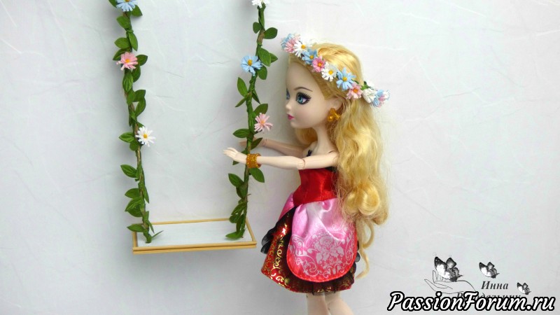 Для куколки сплела веночек из ромашек. Уже весна, пора плести куклам веночки:)