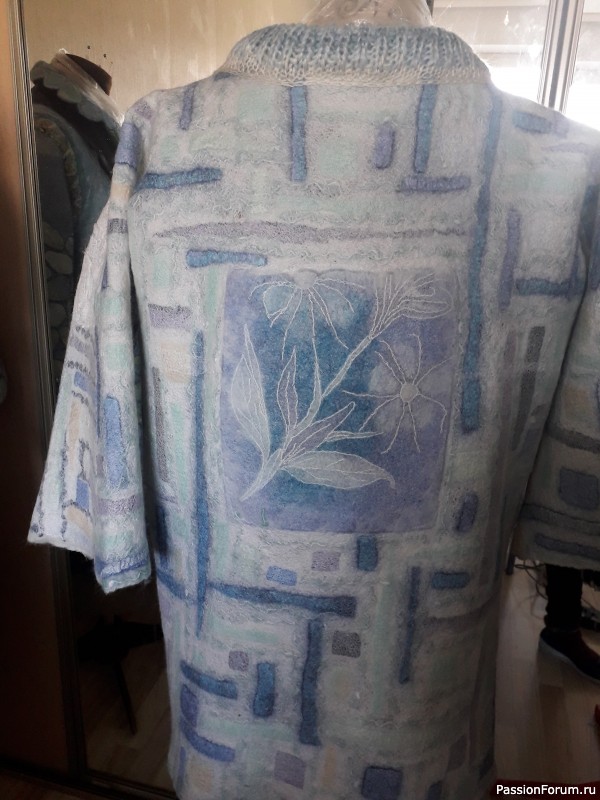 Лёгкое валяное пальто с элементами старинных кружев.Сотворилось на воспоминании о голубых морских волнах ранней весной,у нас,на Балтике,в Таллинне.