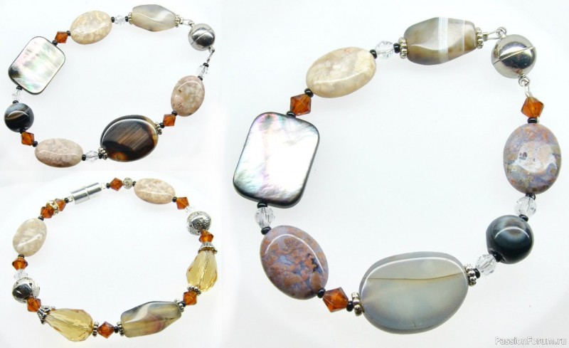 Агат во все времена популярен своей сдержанной загадочностью и одновременно аристократичностью. Агатовые украшения из серии "и в пир, и в мир". Они позволяют внести последний штрих в образ женщины. Хотя, надо признаться, мужчины тоже хорошо относятся к агатовым украшениям (кольца, браслеты, запонки, кулоны). Литотерапевты говорят, что минерал транслирует хозяину/хозяйке такие ценные качества, как дипломатичность и дружелюбность, за это его зовут камнем учителей. Агат делает речь понятной, ёмкой и убедительной. Его энергетика укрепляет здоровье, выносливость, убирает агрессивность. Очень полезен людям, работающим в коллективе, так как активизирует деятельность мозга и помогает при высоких информационных и энергетических нагрузках. Агат - защищает и экранирует от негативного воздействия. Поэтому рекомендован всем беременным женщинам. Дарит своему хозяину/хозяйке спокойствие и благодушие. Целители отмечают благотворное влияние на общее состояние здоровья.