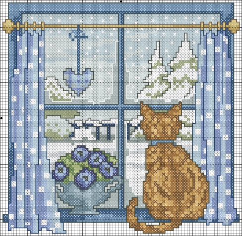 Схемки вышивки четырёх окон - лето, осень, зима, весна.