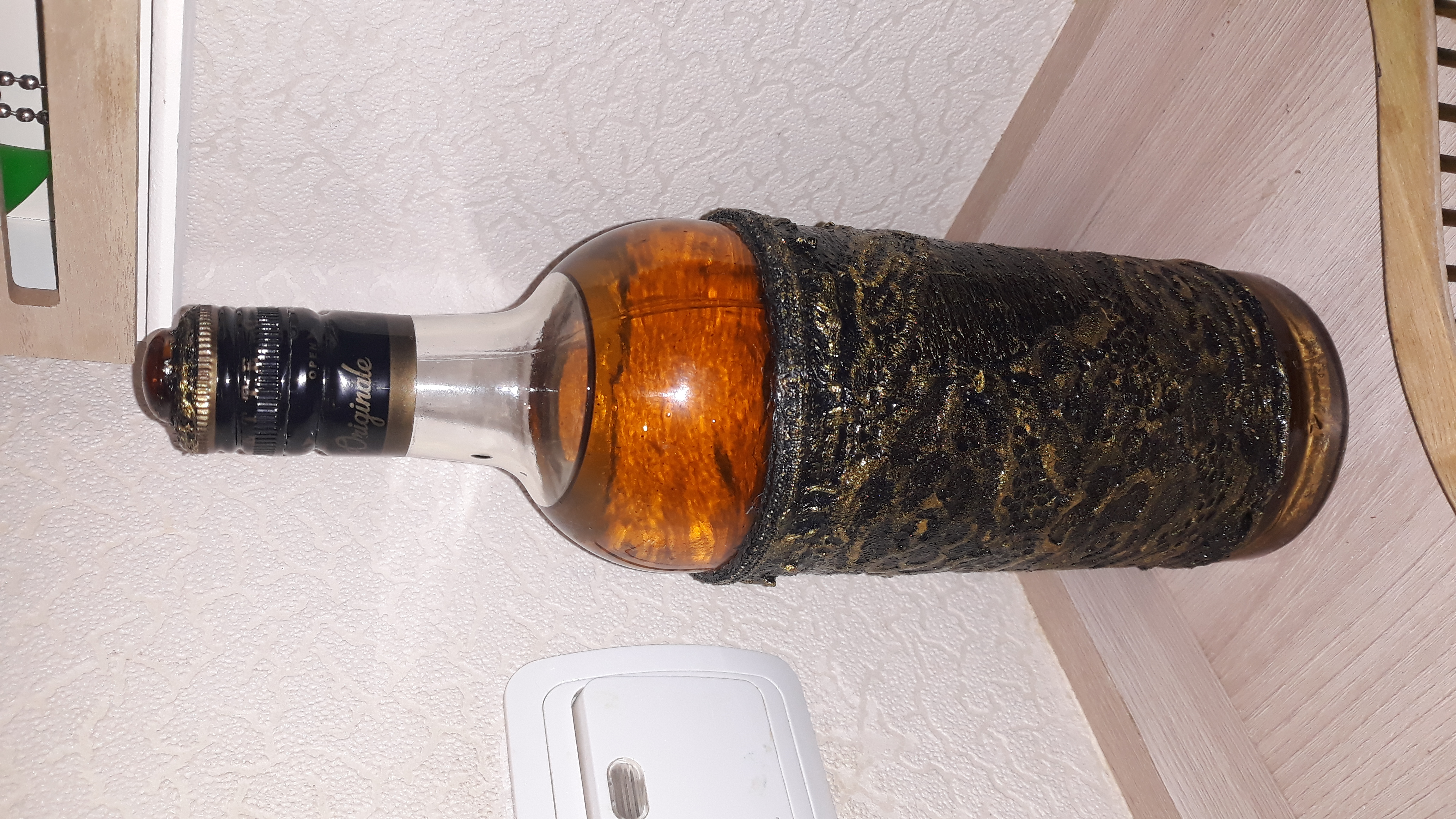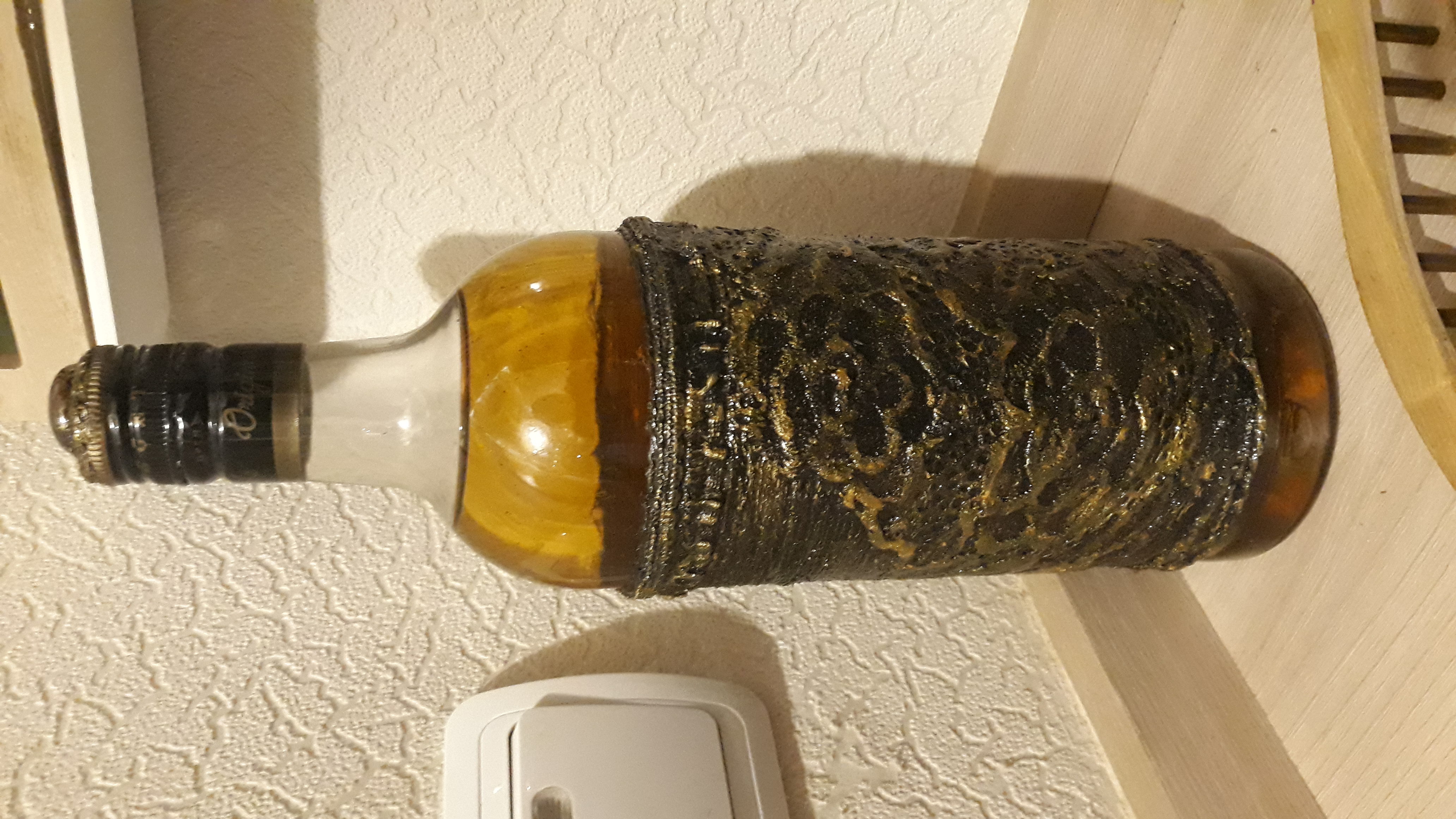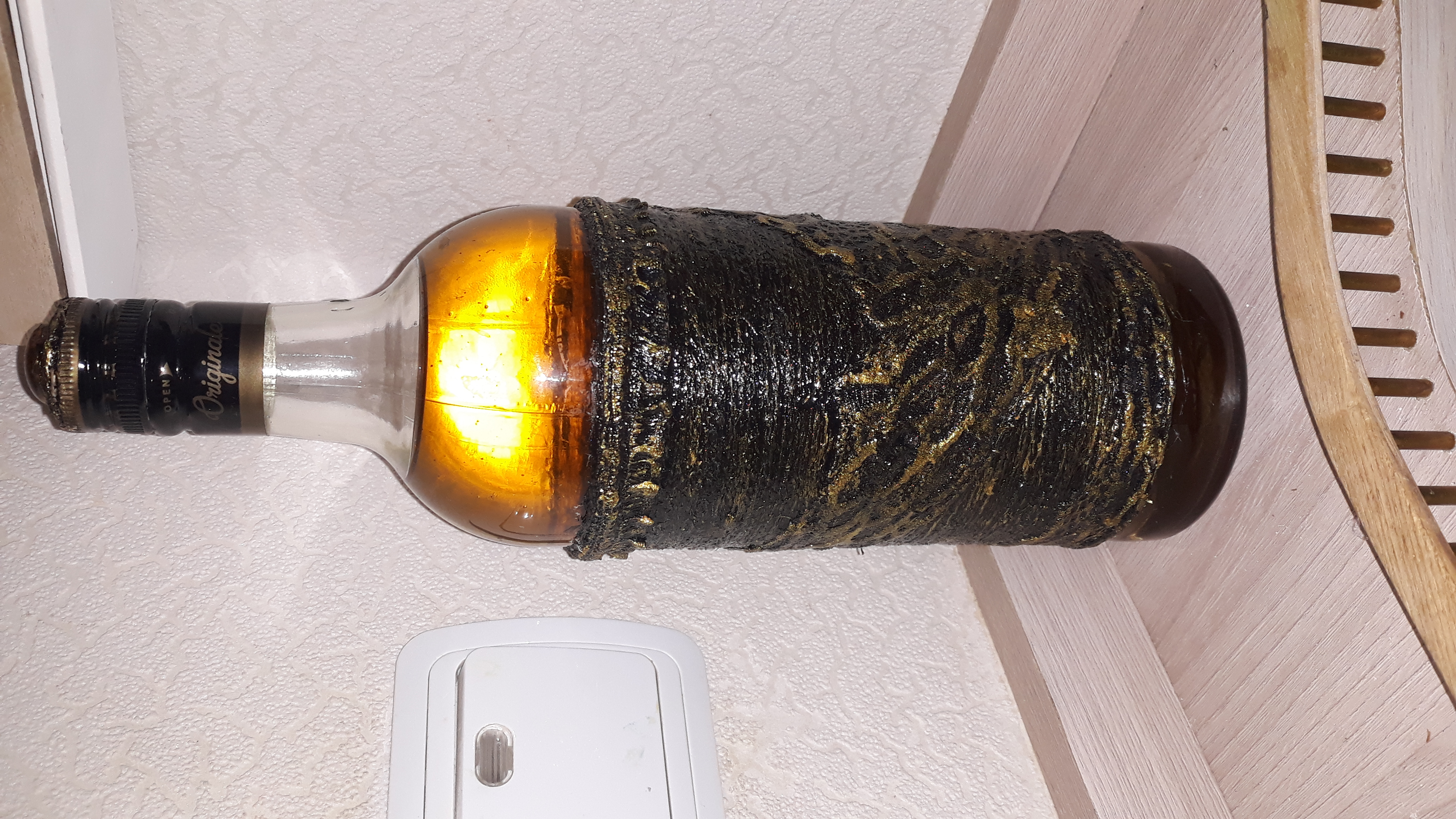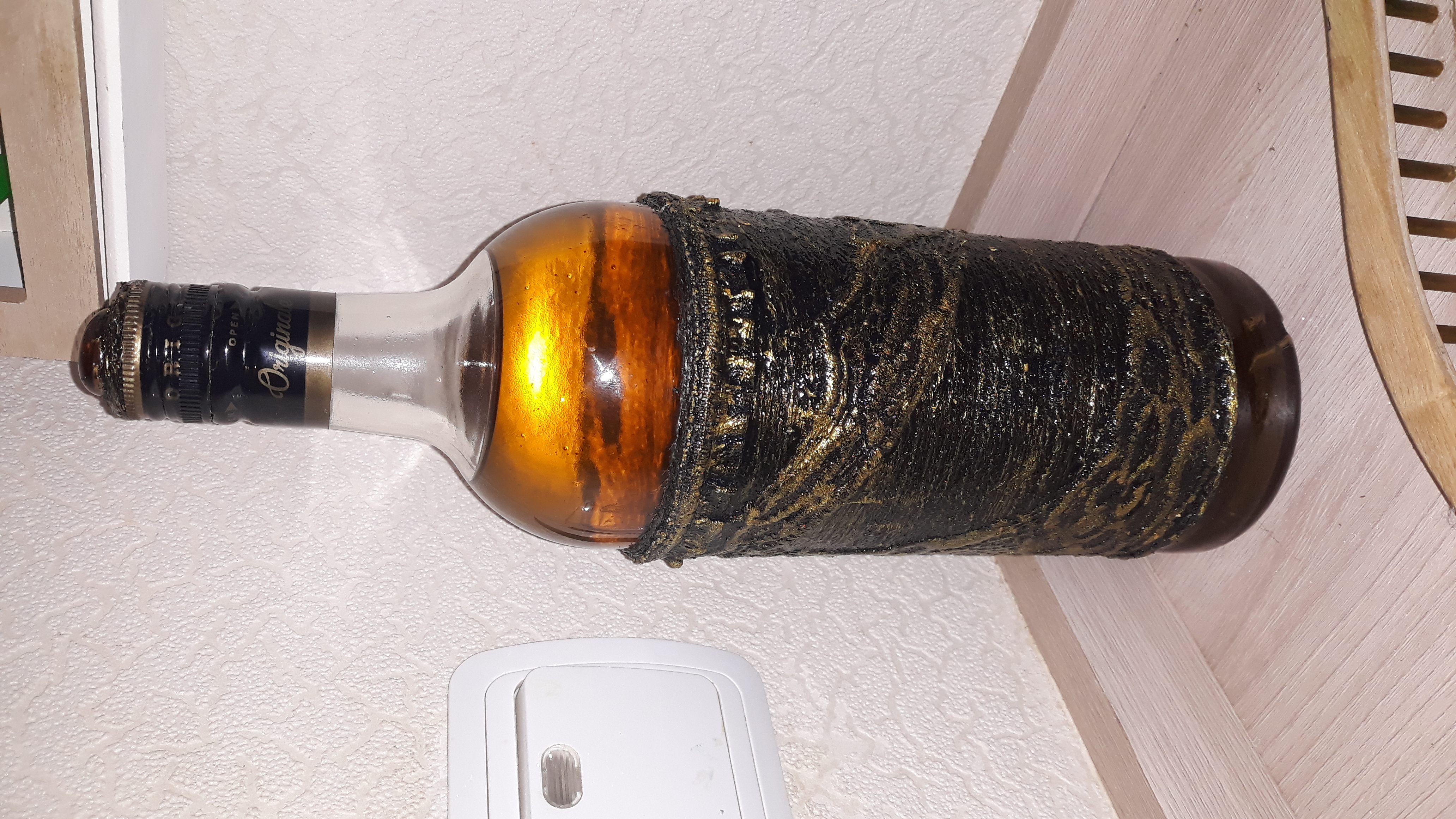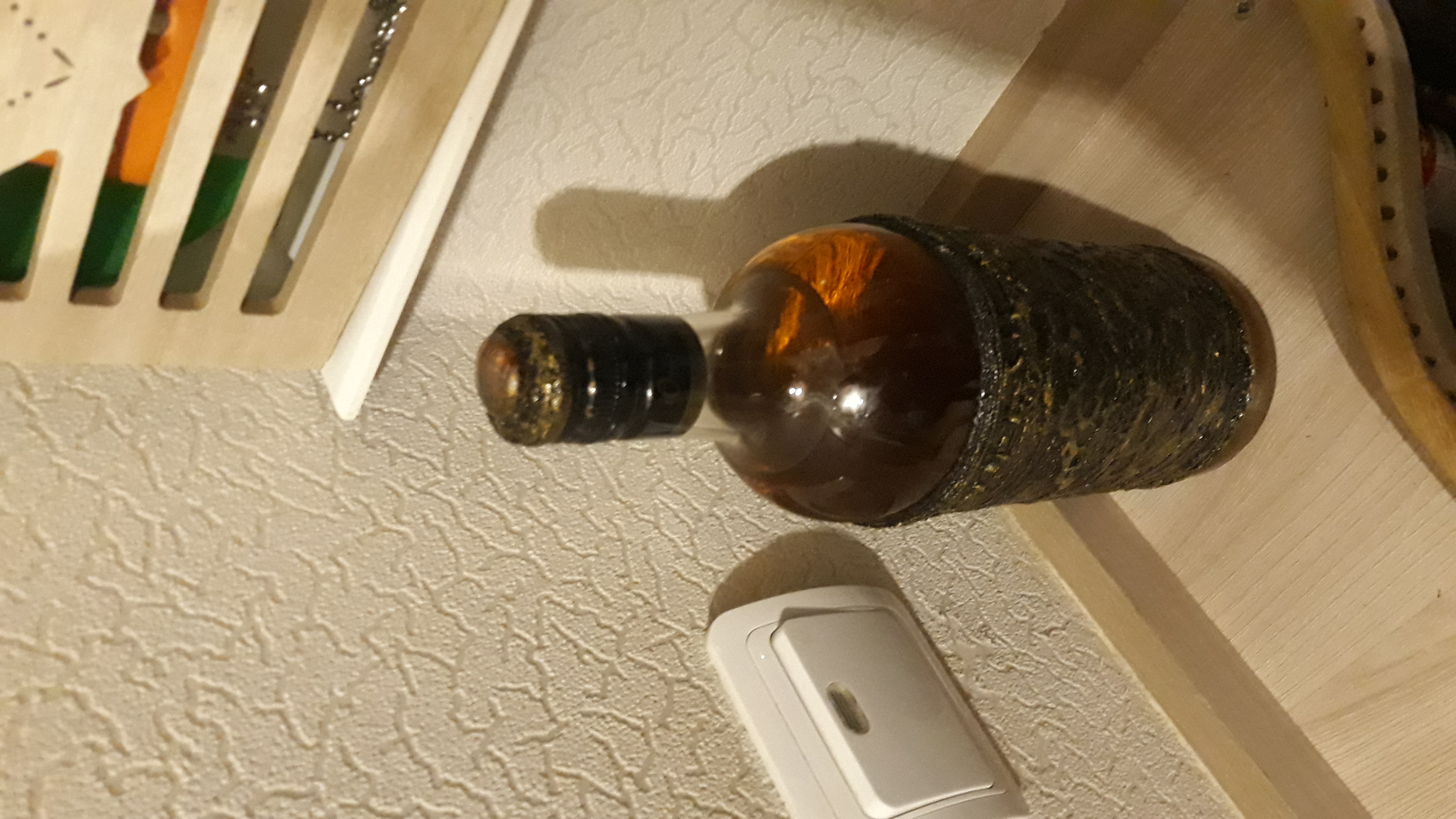 Для начинающих в этой области я поделюсь скромным мастерклассом. Покажу бутылку до покраски и пролачивания. Авось, пригодится мой опыт)