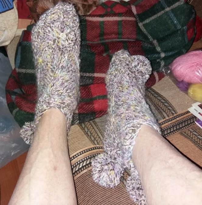 Муж прав-как портянки!!! Японцы, видимо видели наши портянки, и на этой основе предлагают удобные домашние тапочки.СвяжИте и мужу-ему очень понравятся!!!