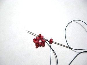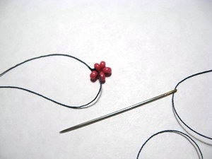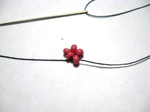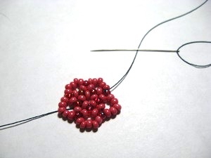 1. Наберите 5 бисеринок и соедините их в кольцо.