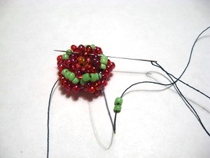 Седьмой ряд лепестков — вплетаем по 4 бусины.