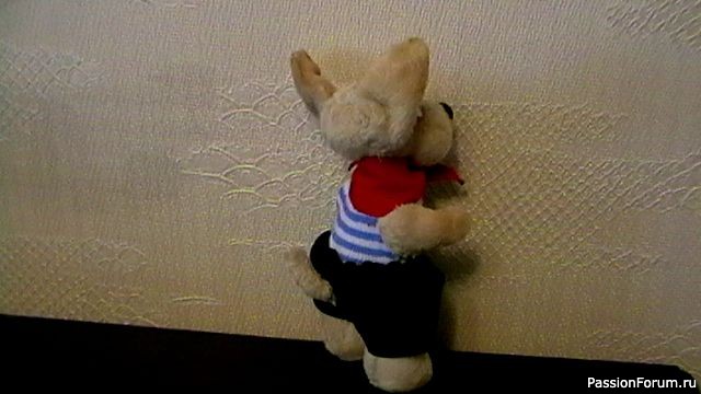 Не очень понятно, как крепятся руки-ноги. — шплинты или пуговицы? Хотя, пуговиц, вроде не видно. Немножко ножки кажутся не на нужном месте. Может, это из-за набивки. У меня такое бывает. Побольше набиваешь пузичко внизу и с боков ( в меру, конечно), и ножки становятся на место. И обязательно надо делать метку (по выкройке) для крепления рук-ног, иначе легко ошибиться