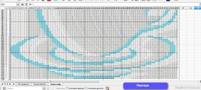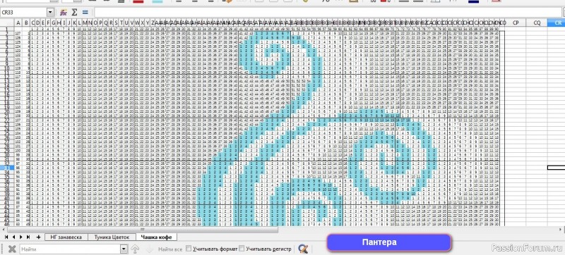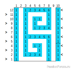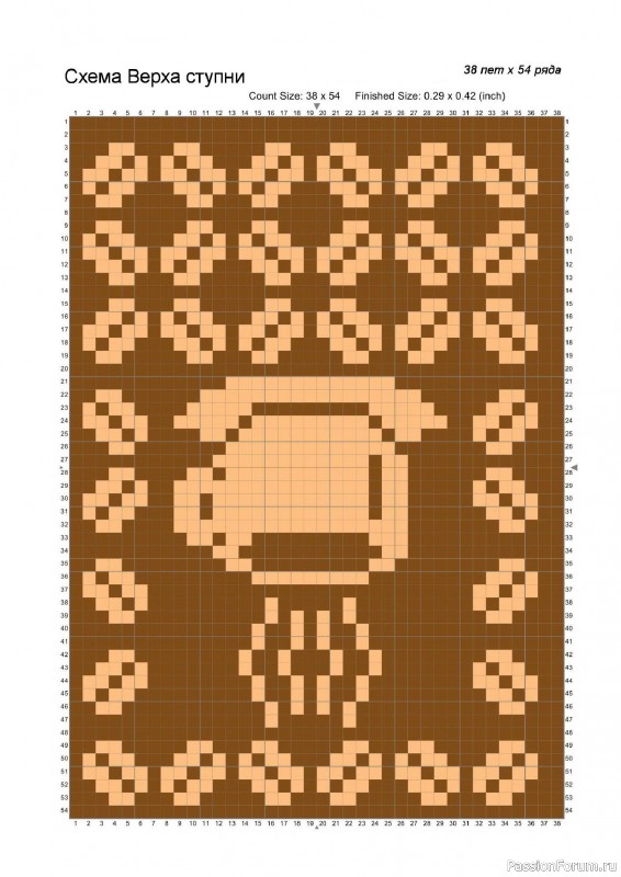 Для начала вам надо связать образец хотя бы 20+20. Сделать расчет. Количество петель будет равняться крестикам по горизонтали, а для вертикали нужен перевод крестиков в ряды.