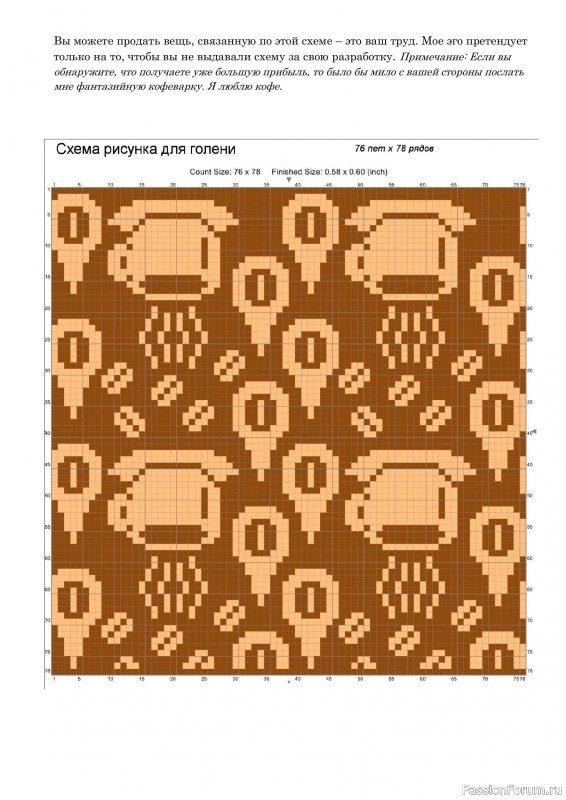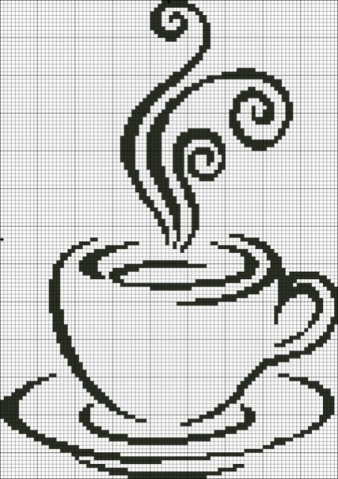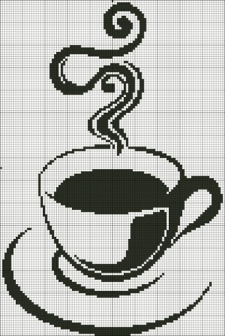 Бортик кофейные зерна, а в центре чашечка кофе. Подскажите пожалуйста, как схему для вышивки пересчитать на петли? В интернете много картинок, но они мелкие и не четкие. Я уже все глаза "сломала". У меня чашечка примерно на 200- 220 петель должна быть. Может кто-нибудь уже вязал такое? Картинки только как пример, сама идея.