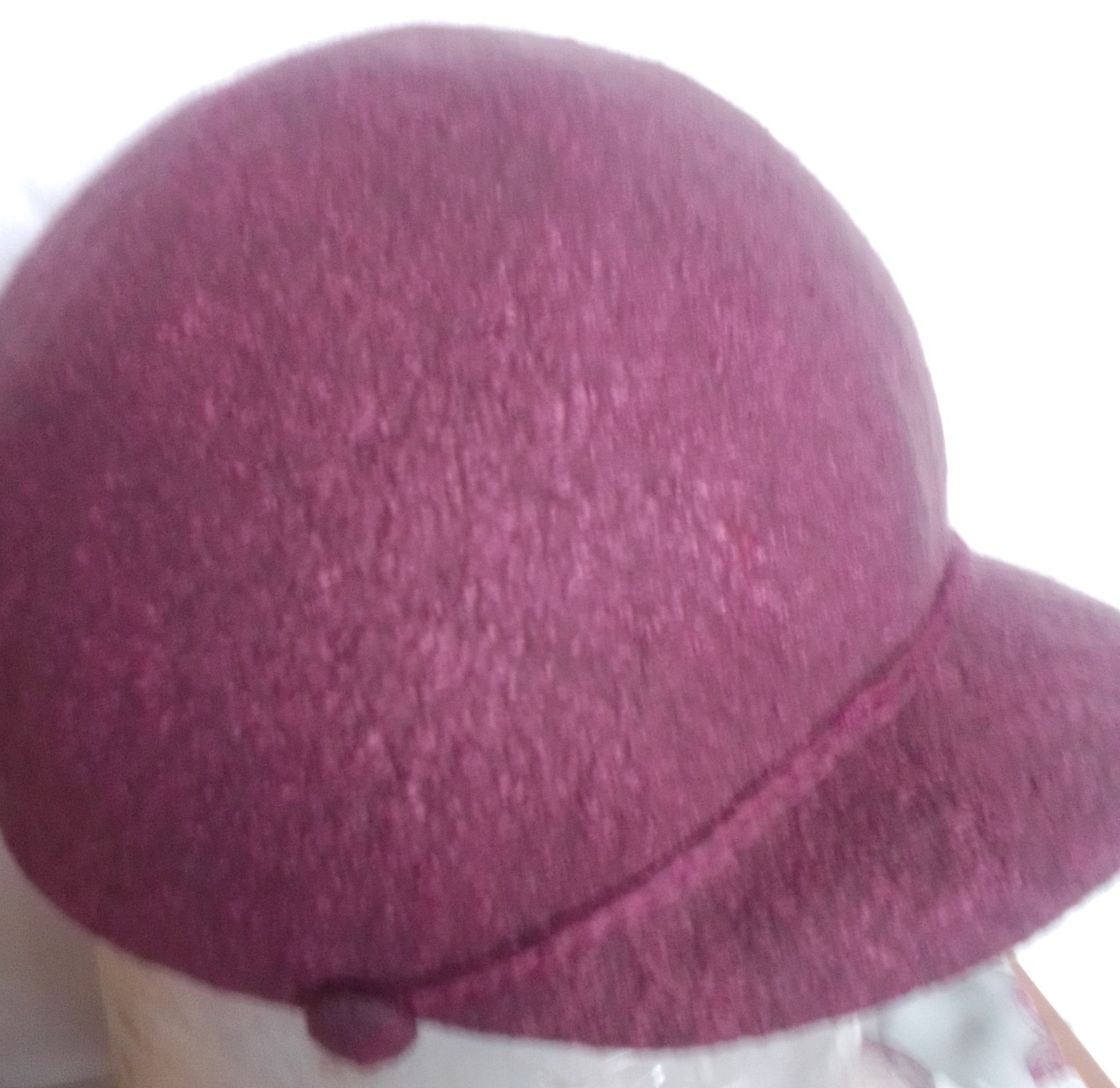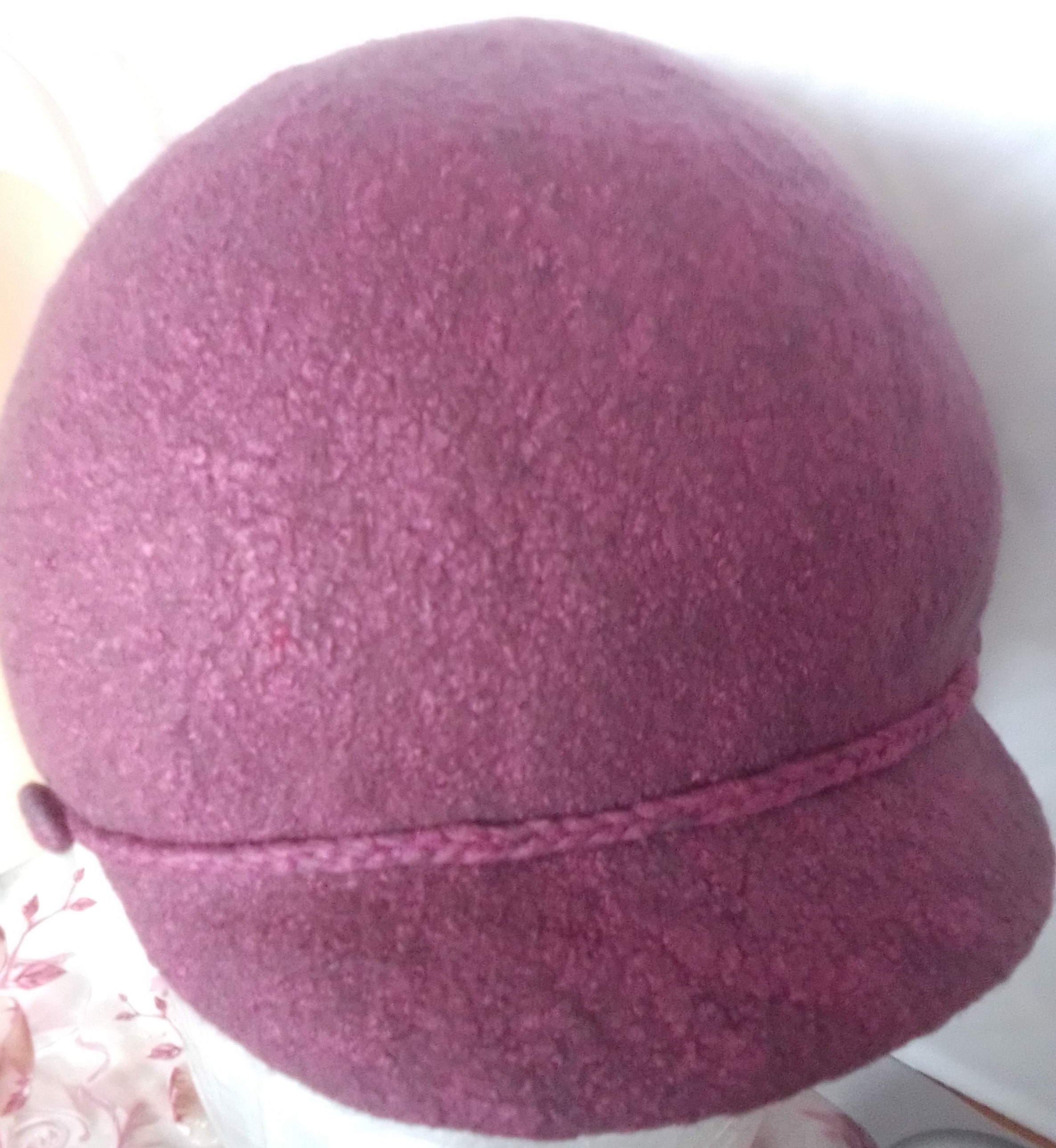 Хочу показать недавно законченную работу. Знакомая заказала шляпку с козырьком. Шерсть итальянская экстрафайн, декор волокнами итальянской вискозы. Шаблон - круг диаметром 60 см, внутренний круг 21 см. Вначале думала как разложить козырёк, а потом решила попробовать не выкладывать его, а сформировать так же, как формируем поля у шляп. Всё получилось удачно. Заказчица довольна и я тоже)))