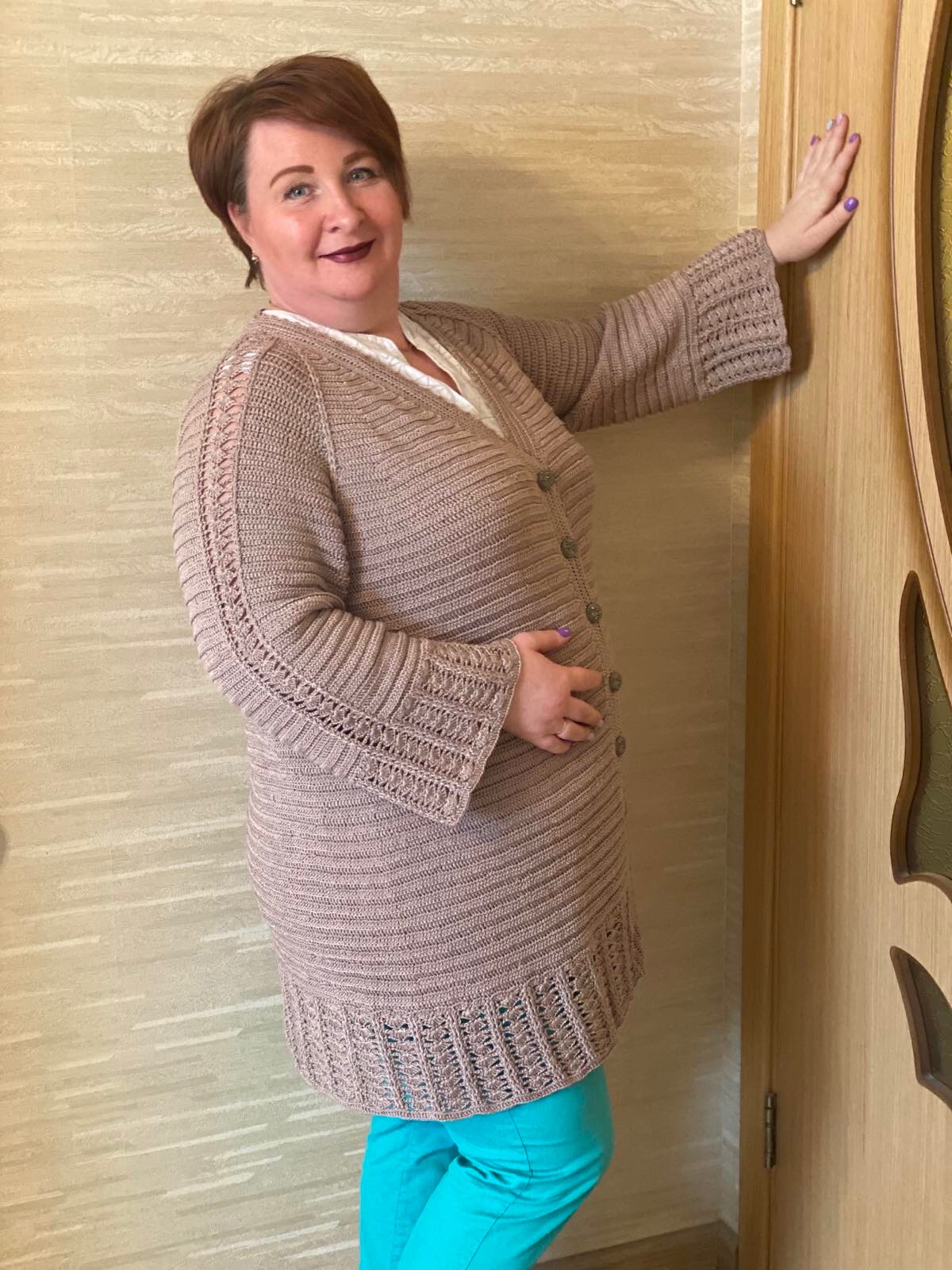 Дочке с ее формами сложно подобрать одежду. Надеюсь, что этот кардиган будет носить