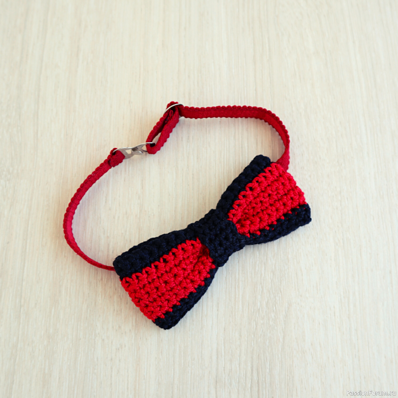 Заказали мне галстук-бабочку для красной рубашки. Я связала несколько вариантов, в итоге остановились на этом.