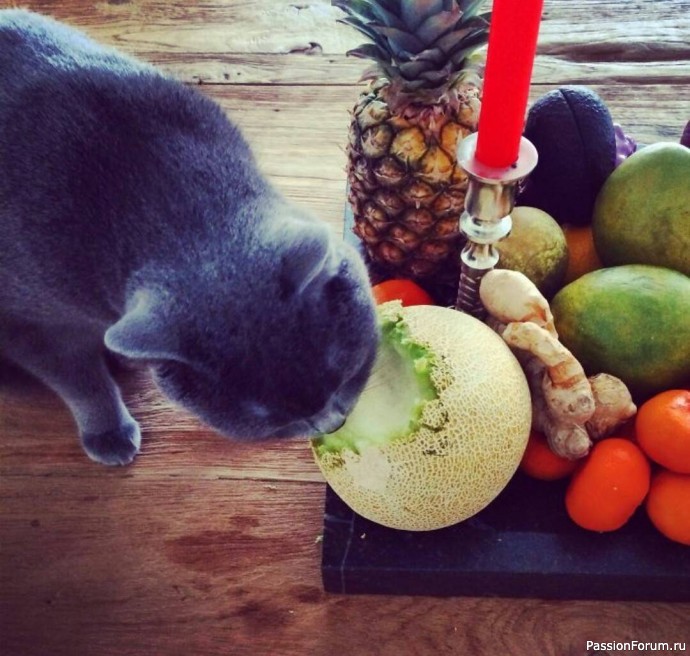 ОООО… с блинчиками котейка прям мой Мурзик… обожал блины и оладушки, нагло воровал их с тарелки если кто-то отвернулся и прибегал к своей тарелке, доедая там… как будто ему кто-то добрый дал оладушку… А кошка обожала бананы, арбузы и дыню… также лопала огурцы… иногда и малосольные… Эх веселое было время… а сейчас у сына аллергия на кошек… грустим...((