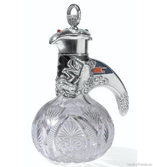 Большой кувшин из граненого стекла в серебряной оправе с драгоценными камнями, высота 42,5 см, мастер Егор Черятов, «Ф.А. Лорие», Москва, 1908-1917 гг.