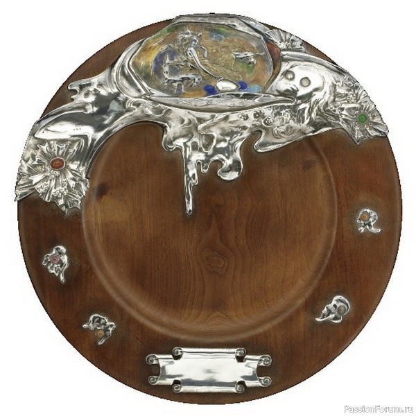 Деревянное подарочное панно в серебряной оправе в стиле ар-нуво с изображением лесной нимфы, украшенное полудрагоценными камнями, мастер Егор Черятов, «Ф.А. Лорие», Москва, 1896-1908 гг.