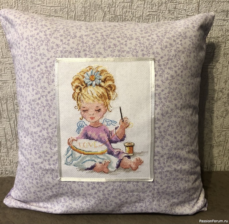 Скопилось много маленьких вышивок, решила оформить в декоративные подушки