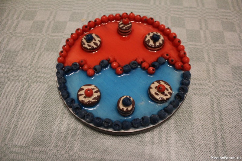 Я тоже решила внести свою лепту в прямом смысле на конкурс! Я слепила ягоды из полимерной глины- красную смородину и чернику и сделала ягодный тортик с желатиновой заливкой из эпоксидной смолы. Буду рада, если мой мастер-класс кто-то захочет повторить.