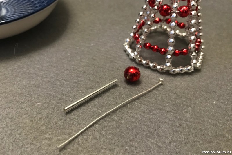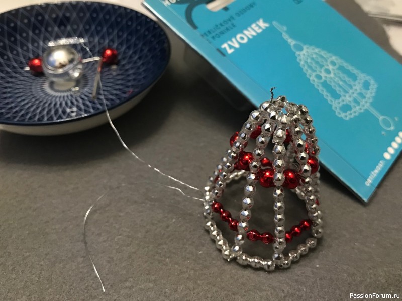 Я приступаю к своему колокольчику... Постараюсь, как можно более подробно рассказать вам о своей работе. Думаю, вы тоже можете попробовать сделать такую ёлочную игрушку из бисера и стекляруса.