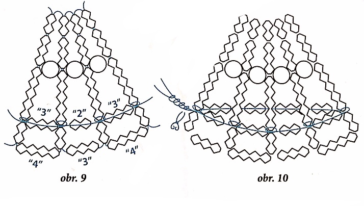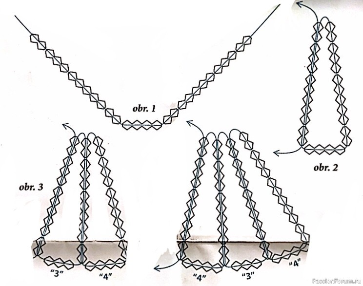 Начнём изготавливать корпус колокольчика. По схеме вы видите количество бусин и места сгибов.
