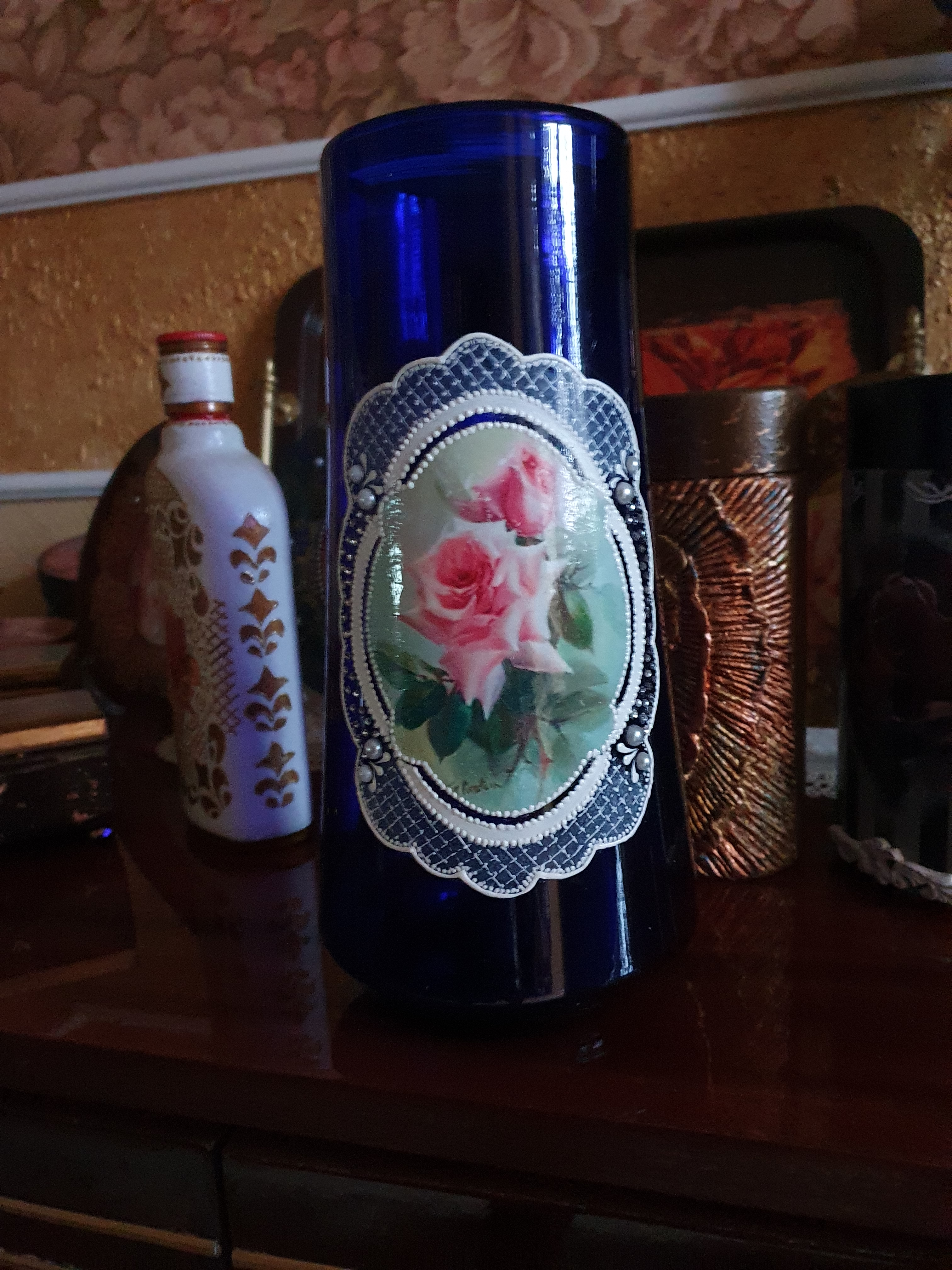 Наконец ты порадовала нас своими работами. Я их так люблю рассматривать. Дерево сама нарисовала? Графинчик мне похожий как раз сегодня принесли, вот ты мне идейку подбросила как его оформить. Вазочка очень изыскано смотрится. Девочек одела как для лучших журналов моды. А маску то зачем? Хочется не думать об этом, а ты так исторически закрепила факт пандемии