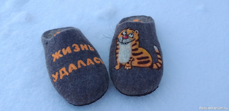 Ольга, тапки супер!!! Очень актуально к празднику, с юмором, сразу вызывают улыбку, ну, а само исполнение просто здорово!!!!!!!!!!!!