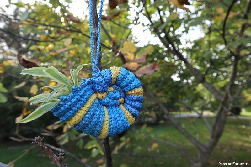 А я вяжу из б/у пакетов — вот такие кашпо-ракушки, мыльницы, пояса, чехлы для банок и многое другое. Приглашаю на мой канал в ЯндексДзен Жизнь в стиле Zero Waste (ноль отходов)