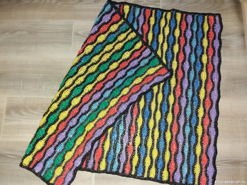 Спасибо, Надюша! Самые первые были из серых и чёрных пакетов. А потом появились цветные. Прототипом явились вязанные из нарезанных тряпочек коврики. У меня сохранился бабушкин «шедевр», в бане служит.