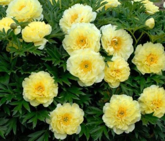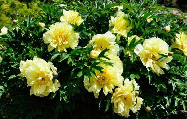 Желтые пионы в садах встречаются не так часто, как бордовые, розовые, белые. Лимонные разновидности созданы путем скрещивания древовидного и травянистого сорта. Окраска может быть однотонной или с вариациями разных оттенков. Все представители ито-гибридов отличаются высокой морозоустойчивостью и сильным иммунитетом.