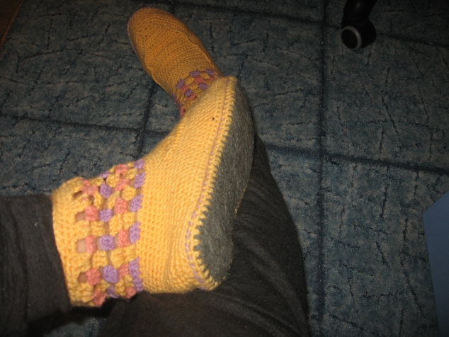 стельку обвязала сначала одну, начала с нее вязать, а потом обвязала вторую и пришила… я думаю ее потом поменять можно легко…