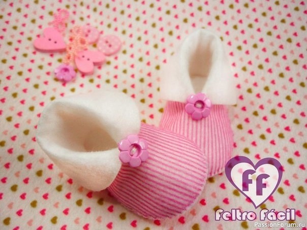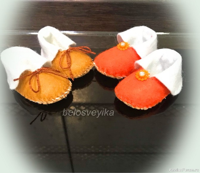 Нашла в инете несложный Мк по обуви. Показываю его вам.Сделала пару топотушек по этому мк.Нос туфель набила наполнителем. Использовала тонкий фетр на верхнюю часть, белый хлопок на внутреннюю часть(подкладку),толстый фетр на подошву. .