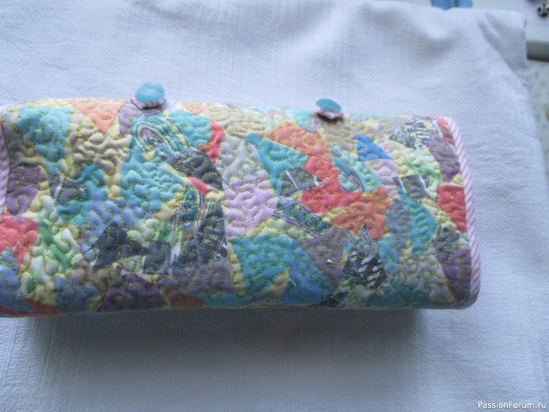 Очень нужен был органайзер для внучки в кружок . Пришлось быстренько сшить, хорошо что имелась готовая лоскутная пицца- стежка .Выставляю на показ и жду ваших откликов. Размер органайзера 25*13в свернутом виде, в развернутом 45*25