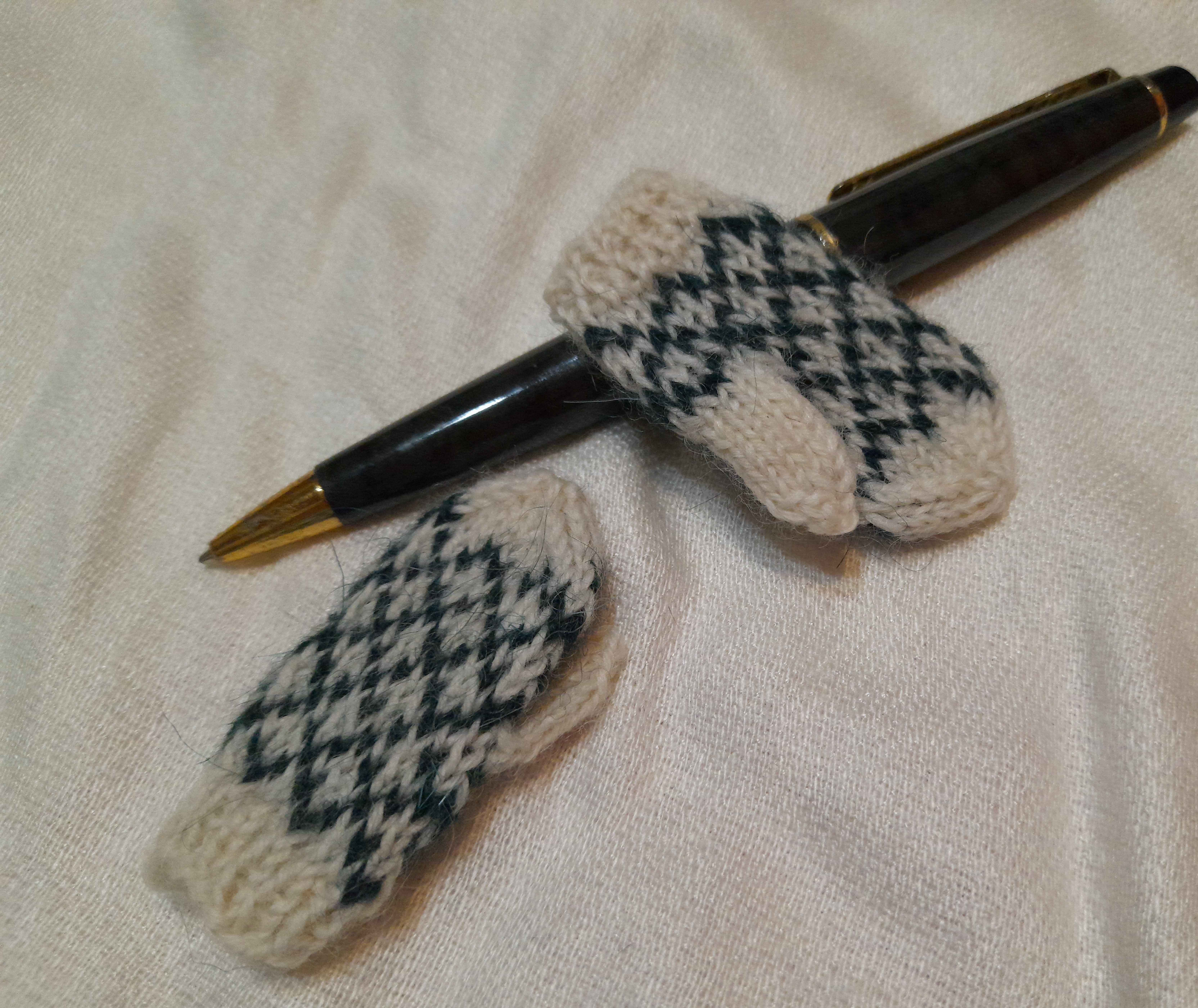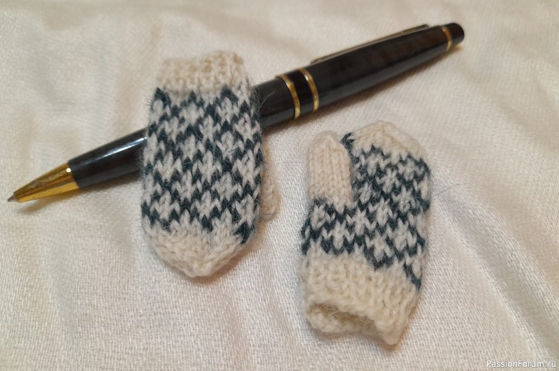 Хвастаюсь своей первой вязаной миниатюрой )) Спицы № 1,5, тонкая шерсть. В общем-то, ничего сверхтрудного. Непривычно, конечно, но и смешно было вязать. Узор вязала в технике Twined Knitting, то есть перекручивала нити по направлению к себе после каждой петли. Так получается гораздо аккуратнее. Лучше даже, чем жаккард без протяжек. Подробнее об этой технике в моем видео. Здесь найдете множество других проектов https://www.liveinternet.ru/users/6131190/post4858...