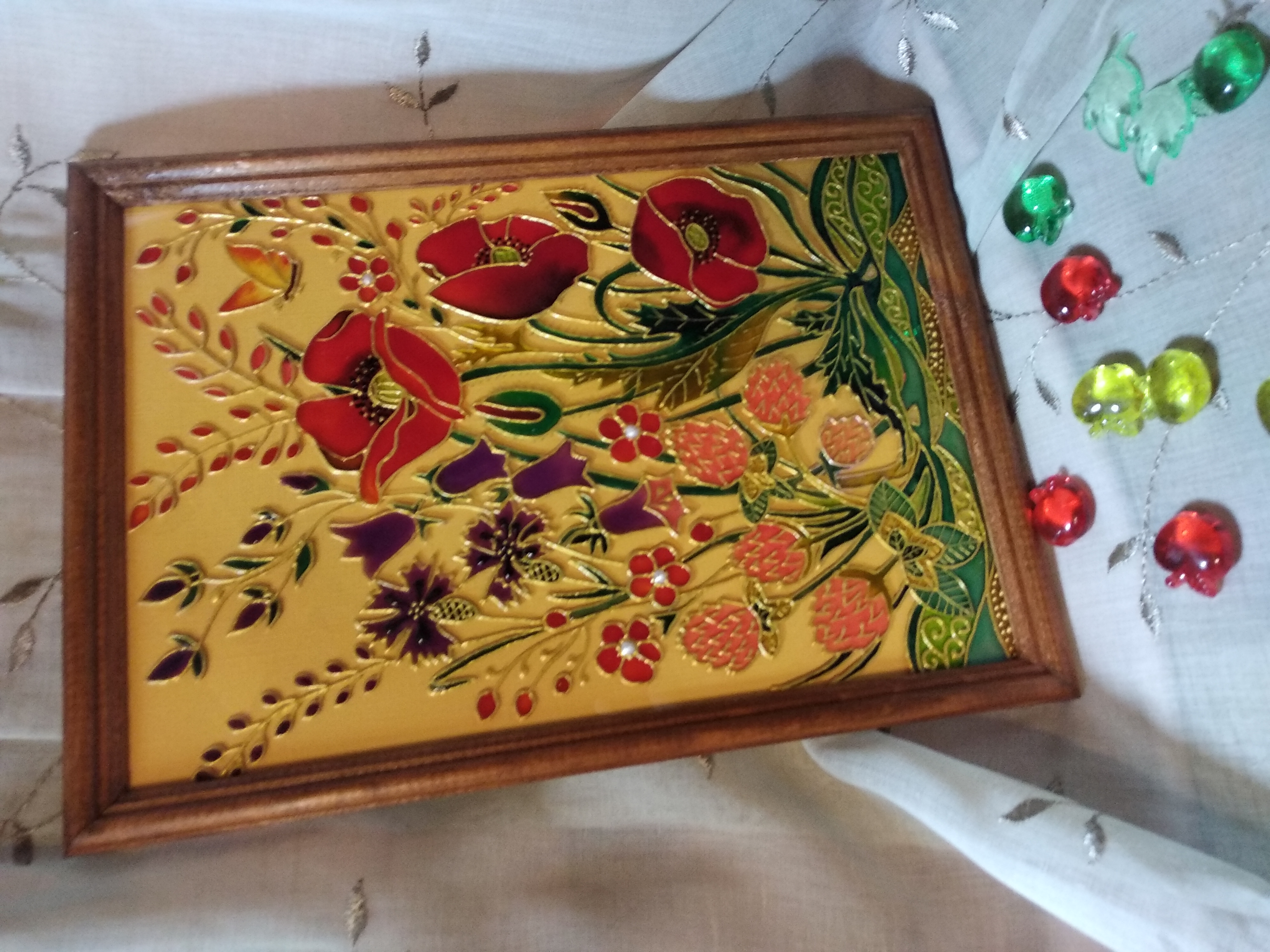 Приятно слышать теплые слова от мастеров своего дела… А, картины еще и переливаются, компьютер не передает всех красок… Это я работала витражными красками Декола..., теперь буду осваивать краски витражные Pebeo, раз картины получились, решила себе приобрести более хорошие краски...