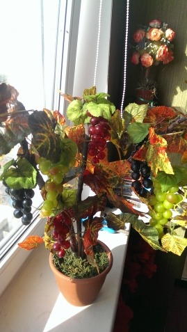 Из сухих веток. А виноград и листья искусственные.:)