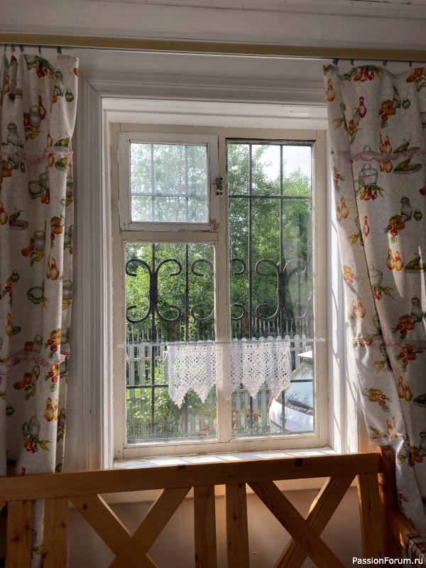 Со вторым окном на этой же веранде все оказалось сложнее. Думаю, что это кружево украшало в свое время полотенце. Совсем другой рисунок. Но это даже не "но"! Имеющийся у меня мотивчик недостаточен по ширине окна. И я снова в поиске идей о том, что же мне придумать???
