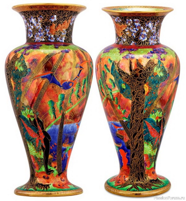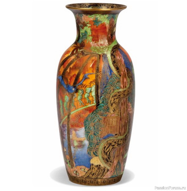 Ваза с сюжетами «Бесы на мосту» и «Древо Змея», высота 29,5 см, Fairyland Flame Lustre, дизайн Дейзи Макейг-Джонс, Wedgwood, около 1930 г.