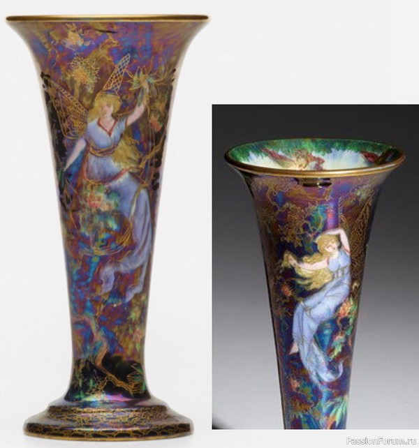 Ваза «Женщины-бабочки», высота 20 см, Fairyland Lustre, дизайн Дейзи Макейг-Джонс, Wedgwood, около 1925 г.