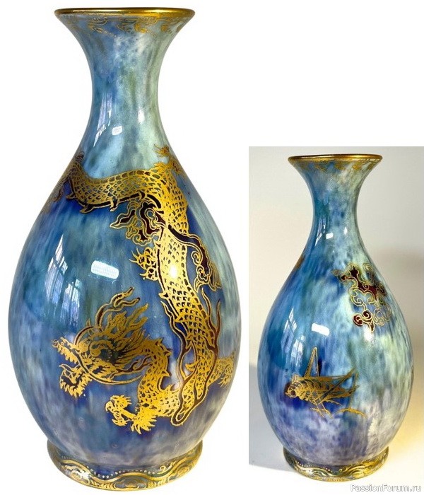Ваза с обычным люстром и золотым драконом, высота 10,8 см, Ordinary Lustre, дизайн Дейзи Макейг-Джонс, Wedgwood, около 1915 г.