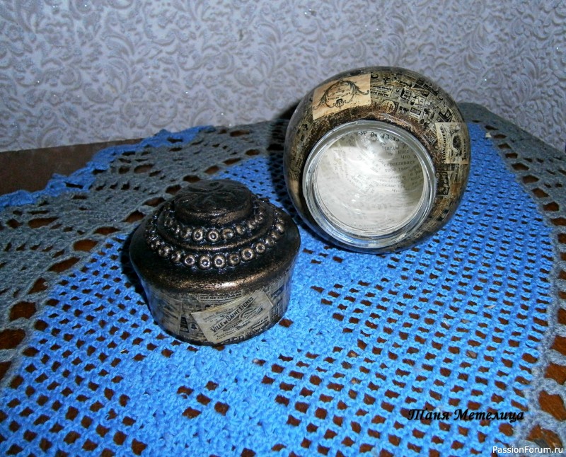 Татьяна, интересная получилась форма! Баночку не узнать! Прекрасная работа!