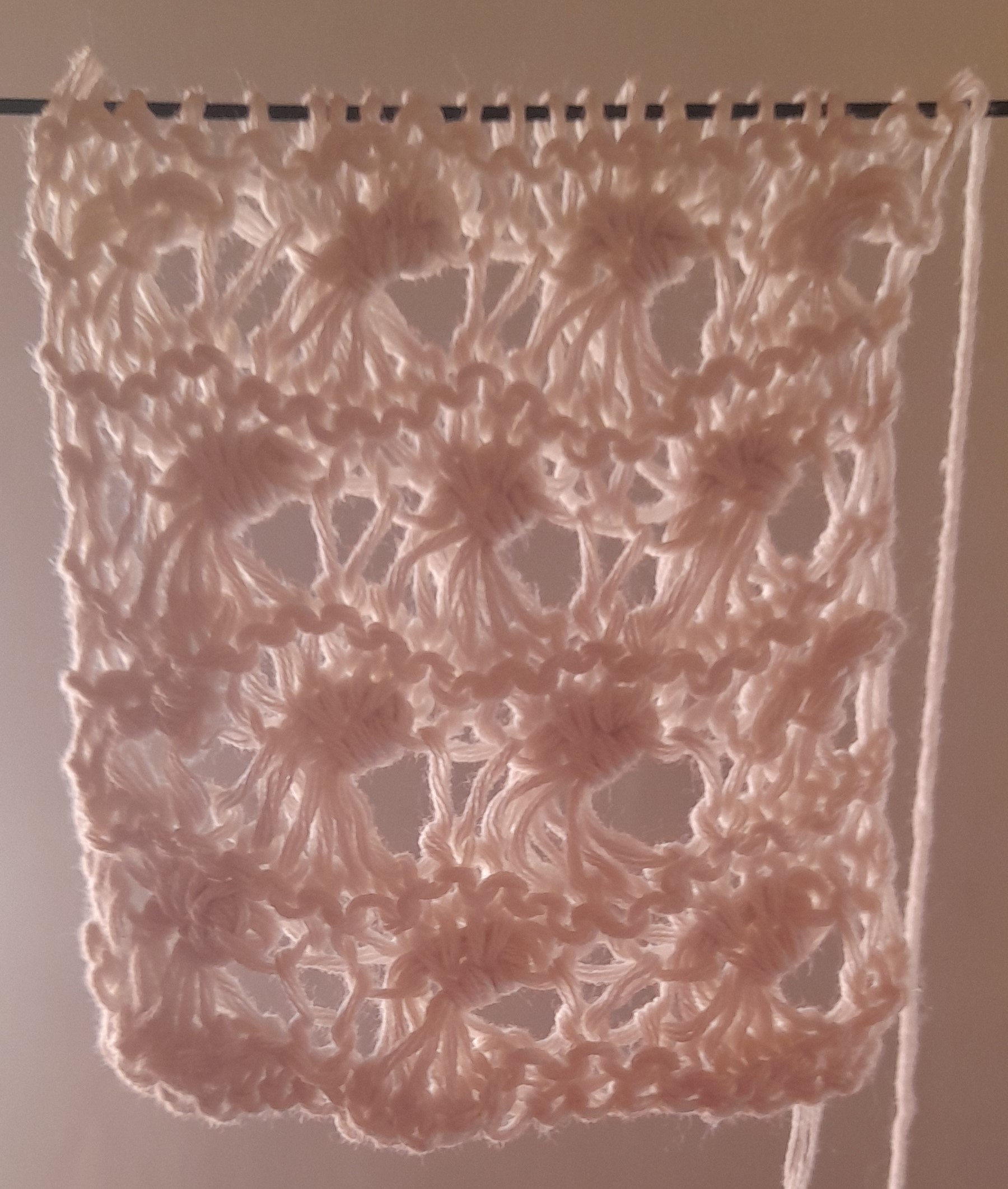 а мне напоминает гипюровое полотно. Если вязать х/б пряжей типа «ирис» спицами № 3 или 4.