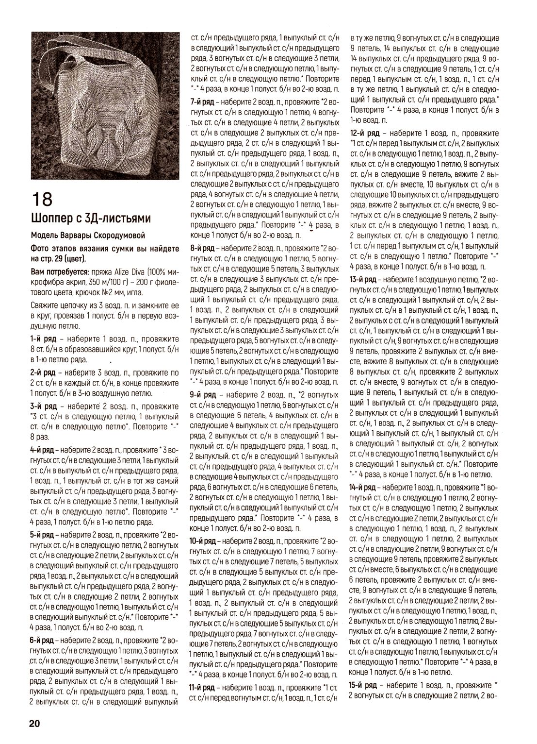 Журнал по вязанию крючком для начинающих и опытных мастеров. В каждом выпуске журнала вы найдёте современные вязаные модели и аксессуары для текущего сезона для женщин и детей, подробные мастер-классы и новые узоры.