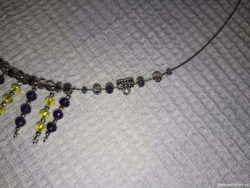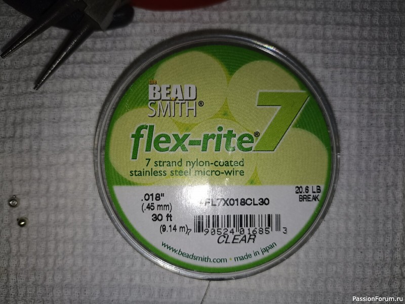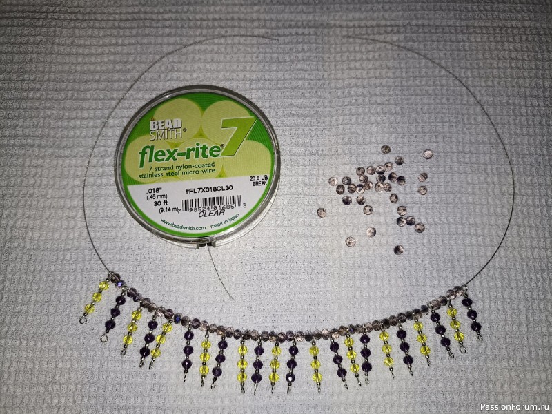 Важно: крайние бусины должны иметь такие отверстия, чтобы тросик мог пройти через отверстие два раза.