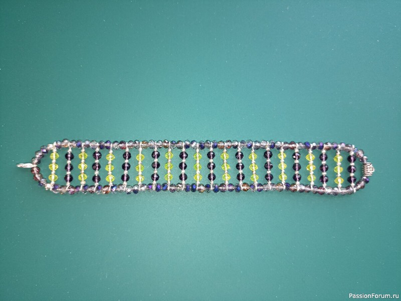 Браслет получился красивый, переливающийся при естественном и искусственном освещении, - как хрусталь, приятно облегает запястье рук.