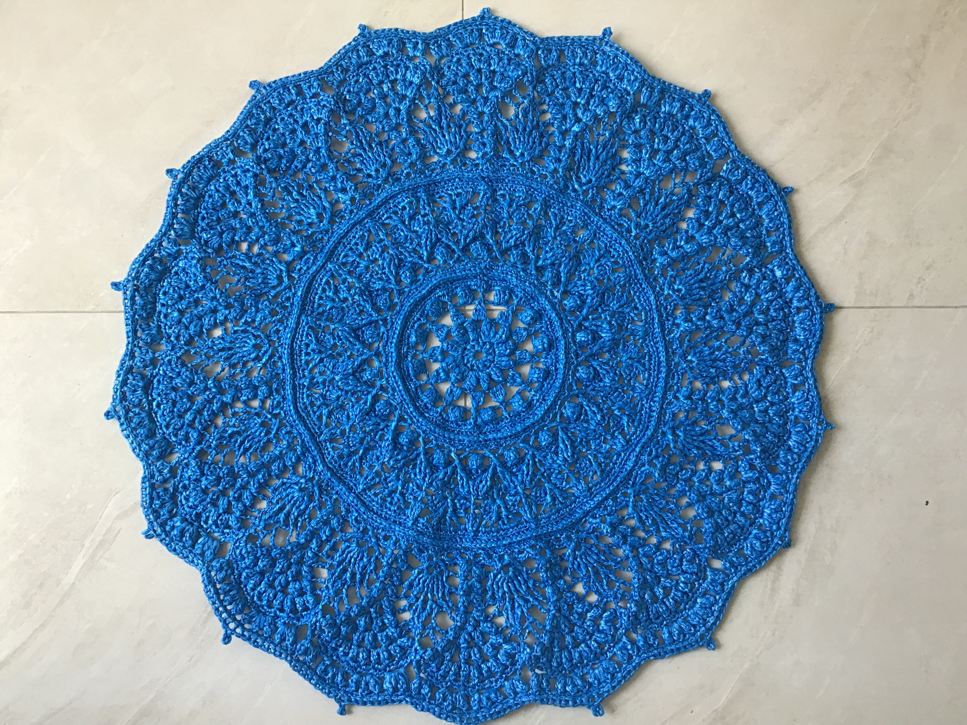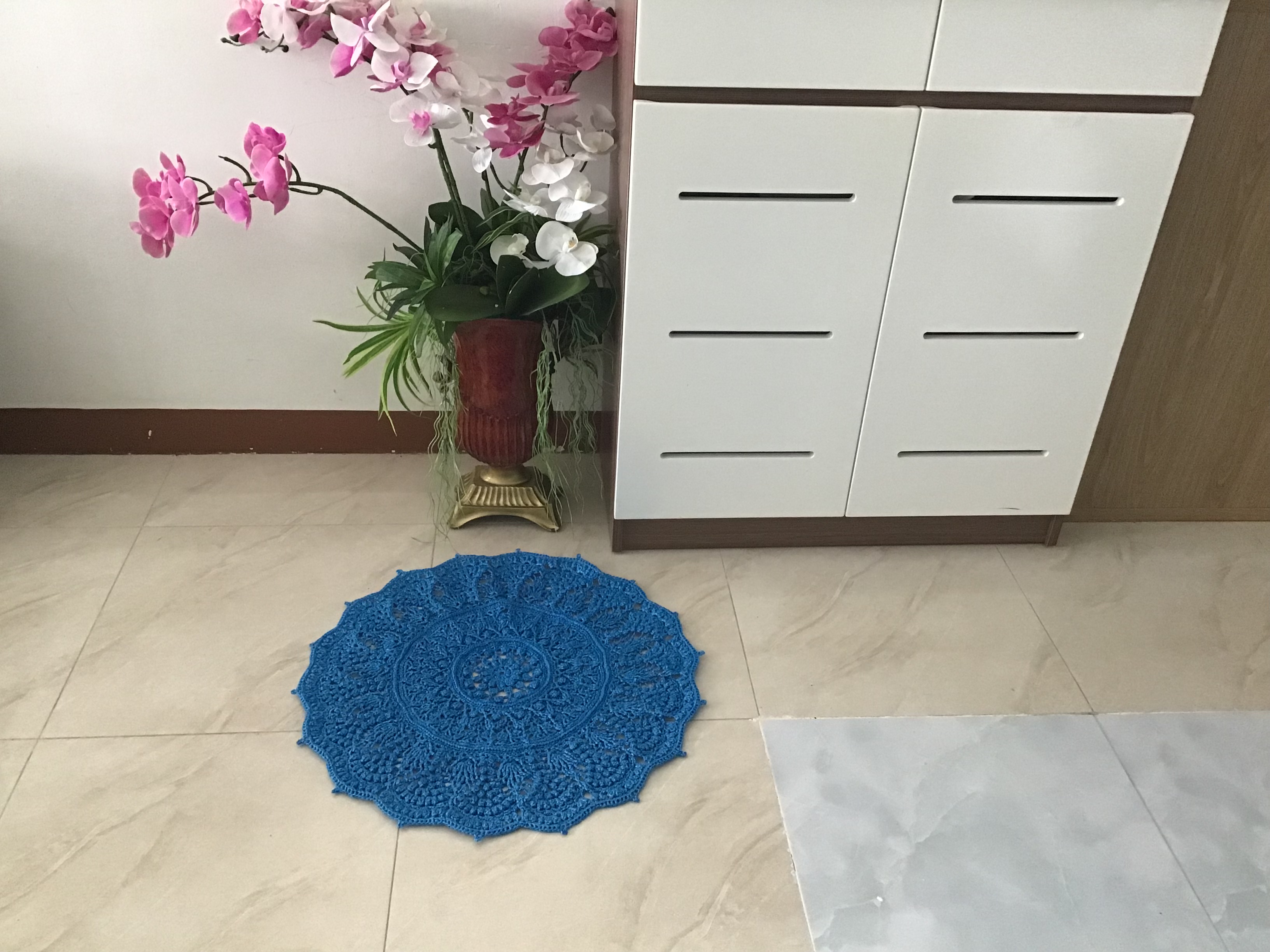 Еще один коврик связался. Честно говоря пока вязала были сомнения потому что сильно фалдил, но оказалось просто надо было довязать до конца и все легло как надо.