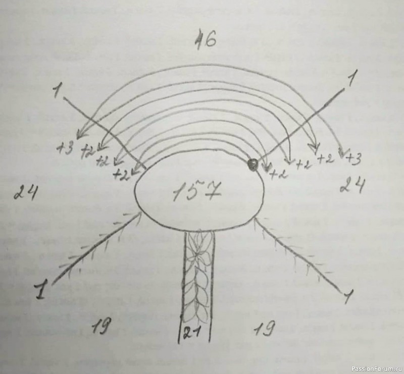 Росток небольшой, мне достаточно три раза прибавила по две петли и один раз три петли.