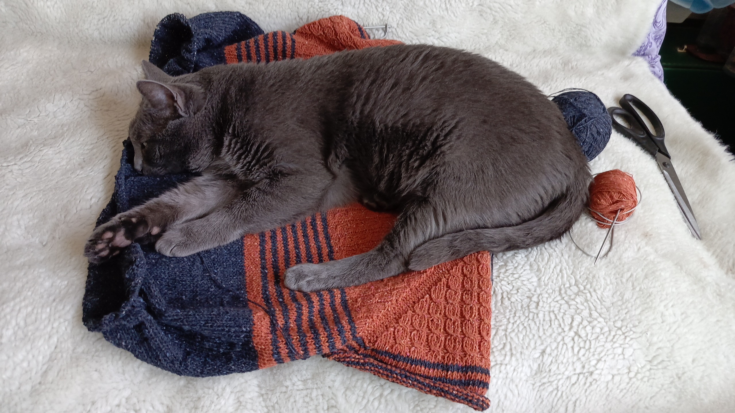 Приятные вещицы получились у Вас. Особенно мне нравится второй, двухцветный джемпер. И кот тоже одобрил!
