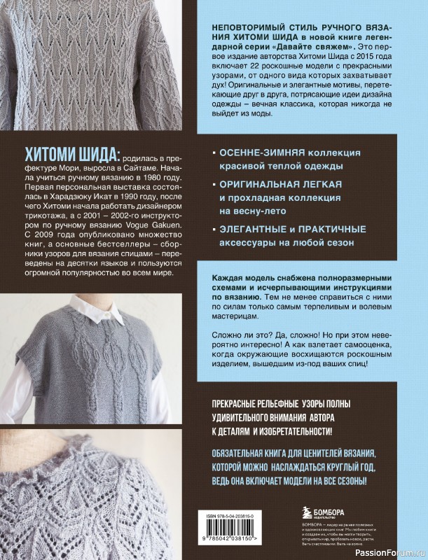Неповторимый стиль ручного вязания Хитоми Шида, знаменитого японского дизайнера трикотажных изделий, в первой книге автора с 2015 года! Издание включает 22 роскошные модели с прекрасными узорами, от одного вида которых захватывает дух!