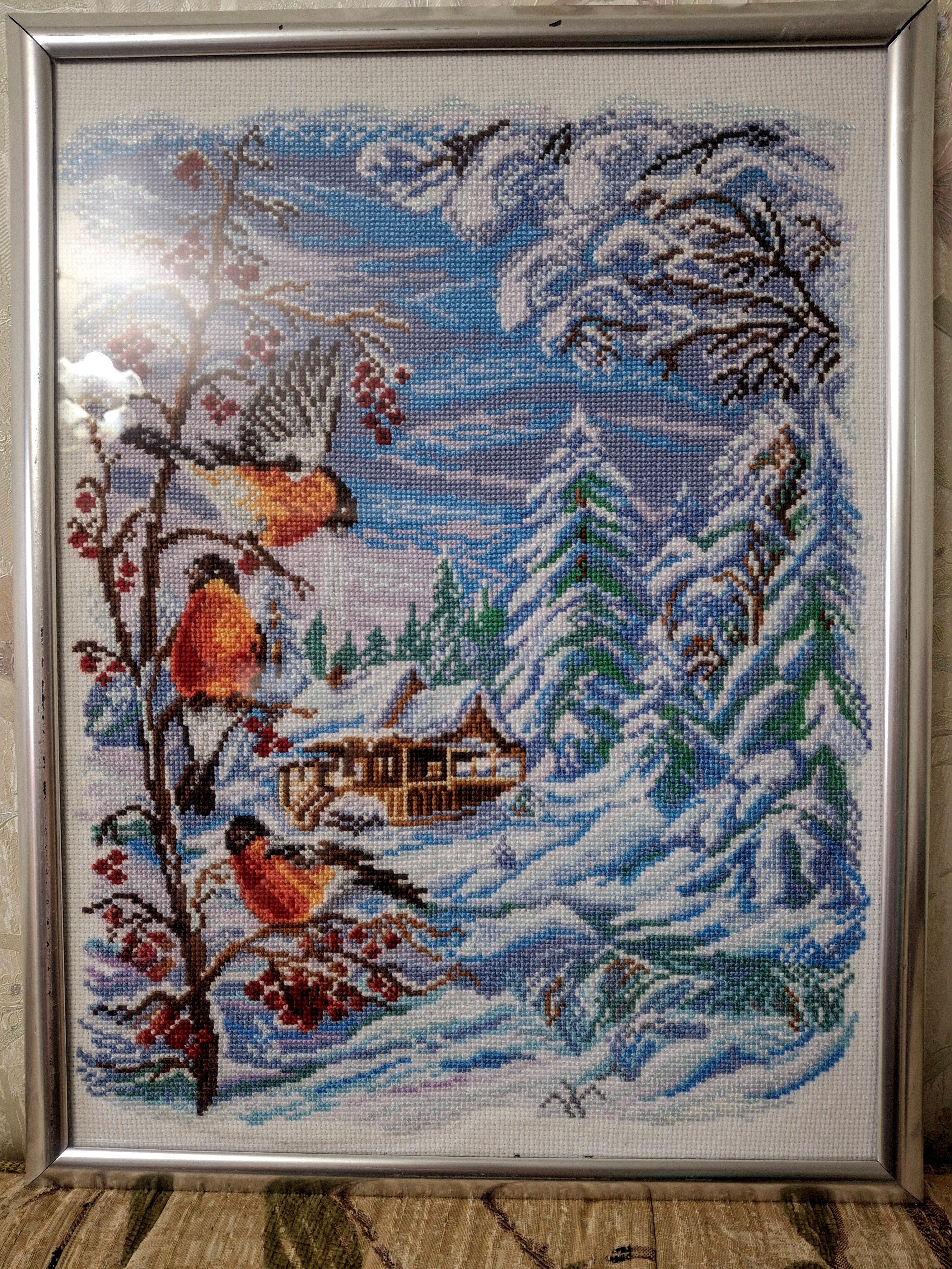 Вышивала по схеме фирмы " Матрёнин посад" размер 40 х 30 см вышивалось легко для себя.