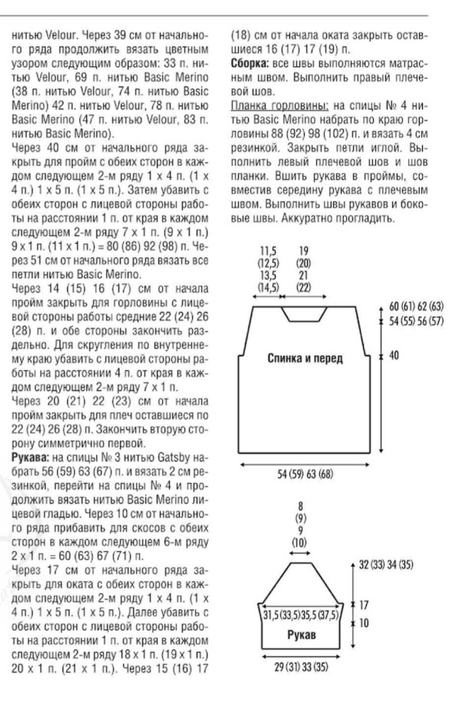 Трехцветный джемпер спицами. Схема и описание вязания.